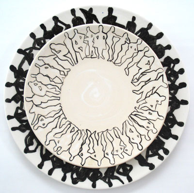Een object van zeefdruk op porselein in een houten kistje, oplage 15.