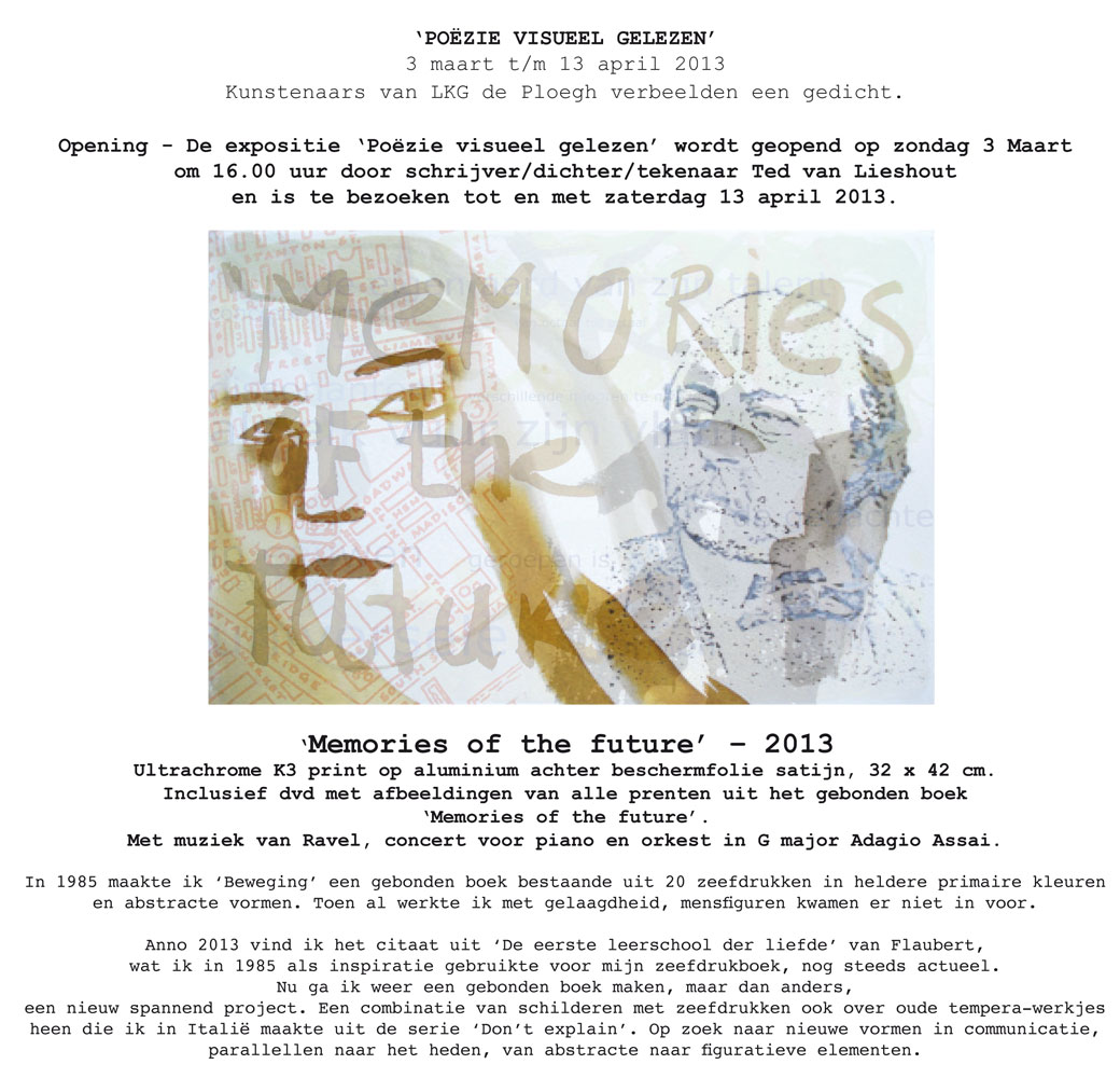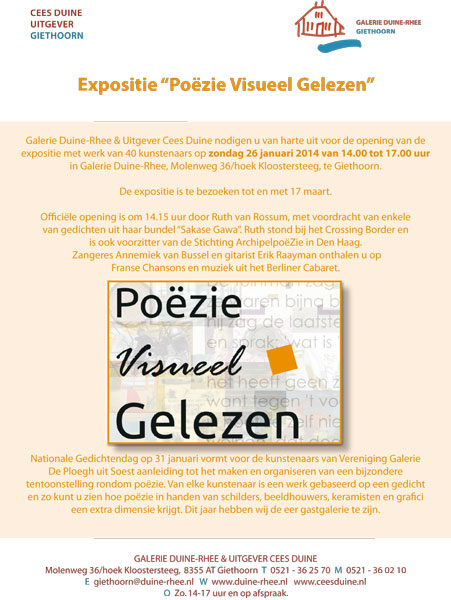 Poezië visueel gelezen - Galerie Duine-Rhee Giethoorn van januari t/m maart 2014